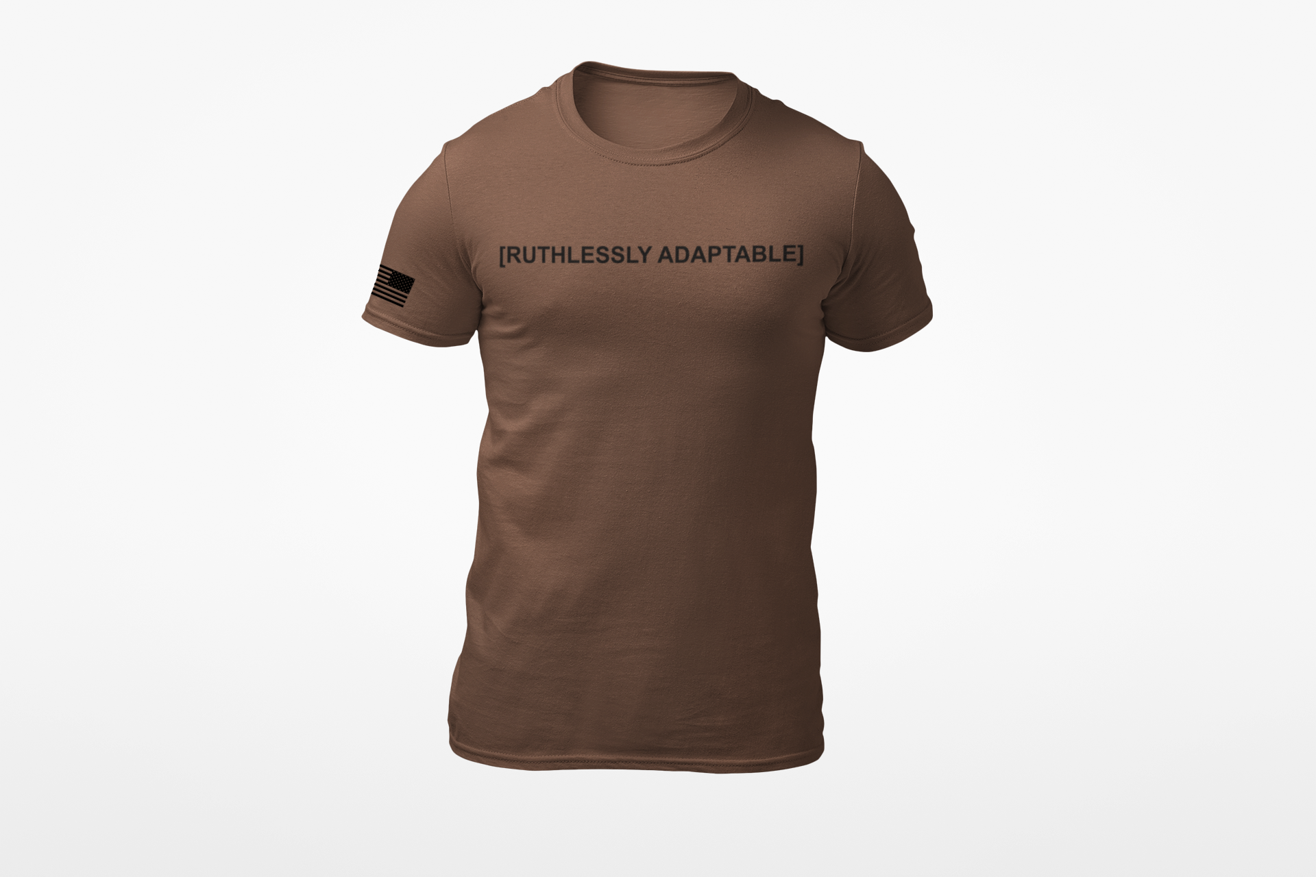 This All- American made athletic tee presents a bold statement - Ruthlessly Adaptable - the ultimate expression from you showing your grit, toughness, and resilience. Engineered for champions and everyday achievers alike, this tee is crafted from the finest polyester delivering unbeatable moisture-wicking, breathability, and quick-drying action. Whether you're hitting the gym, running errands, or enjoying outdoor adventures, this tee keeps you cool, dry, and effortlessly stylish. Its lightweight, durable fabric moves with you, ensuring optimal comfort and performance every step of the way.